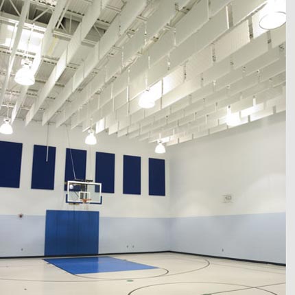 The Baffles are easy to install with our standard Corkscrew Hangers or T-Slot Mounting System and they are perfect for classrooms, office, gymnasiums, swimming pools, or any other room that needs acoustical treatment without breaking the bank!